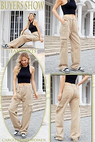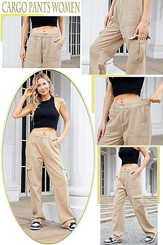 The product is a pair of baggy cargo pants for women. It is made of breathable and comfortable cotton material. The pants have a casual loose design with multiple practical and functional pockets. They have a straight leg, relaxed fit, elastic high waist, zipper, and button closure. The pants can be easily matched with various tops and shoes for any season. They are suitable for parties, shopping, office, travel, daily wear, and outdoor activities. The package includes one pair of baggy cargo pants for women. It is recommended to wash the pants with cold water, either by hand or machine, and to avoid washing them with solid or light-colored clothes to prevent fading and dyeing.