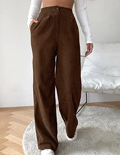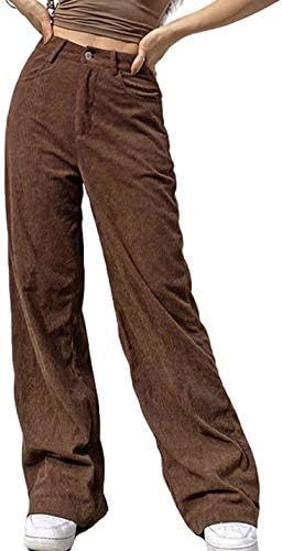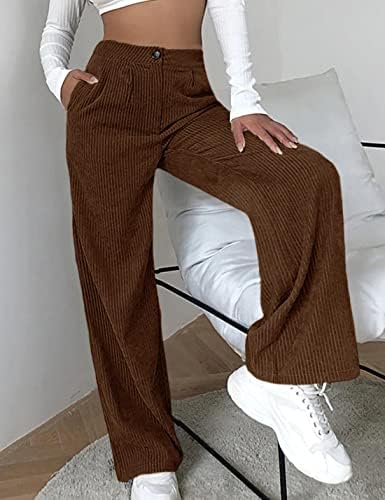 “Himosyber Corduroy Wide Leg High Waist Loose Trousers with Pockets for Women”