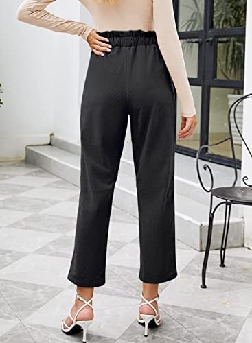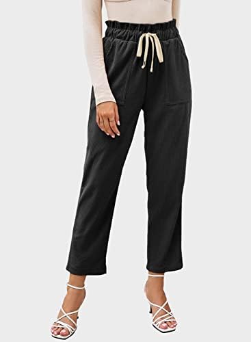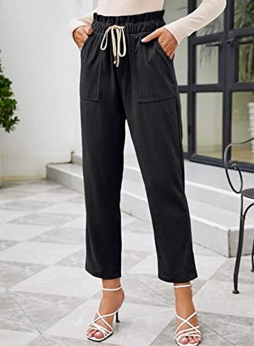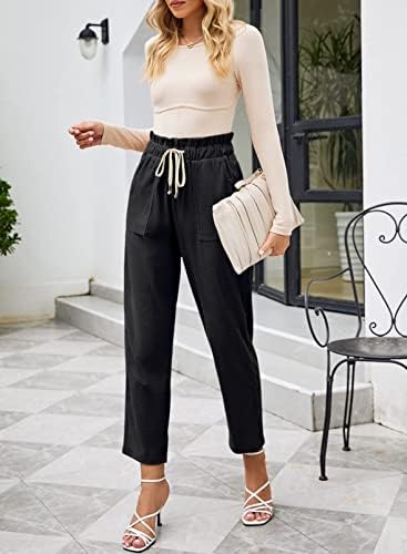 Features: drawstring elastic high waisted pants for women, two large pockets, straight leg pants, loose fit, vintage pants