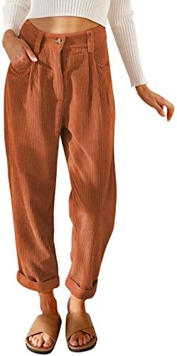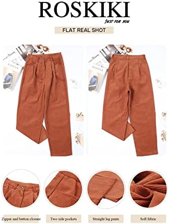 BUY NOW – ROSKIKI Womens Solid High Waisted Corduroy Straight Leg Pants with Pockets