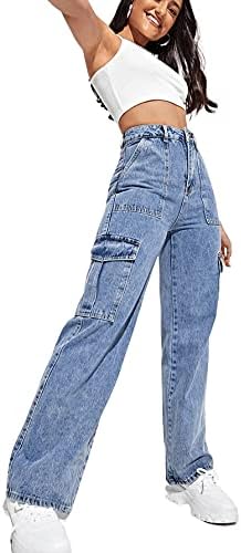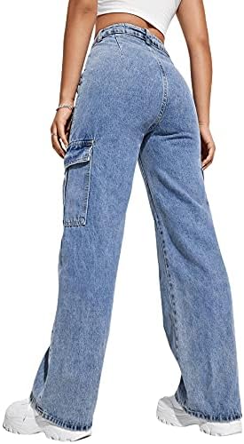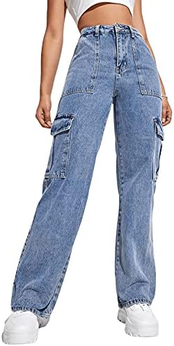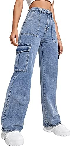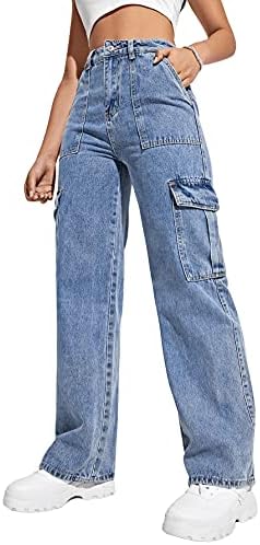 BUY NOW – SweatyRocks Women’s High Waist Cargo Jeans Flap Pocket Wide Leg Denim Pants