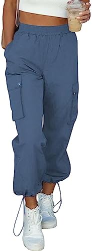EVALESS Women’s Baggy Cargo Pants with Elastic Waist and Pockets