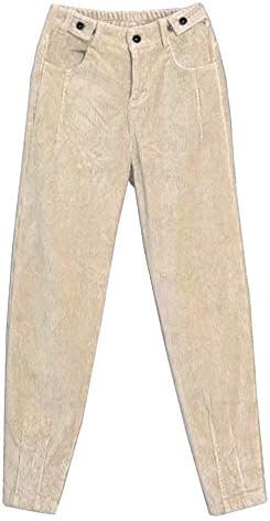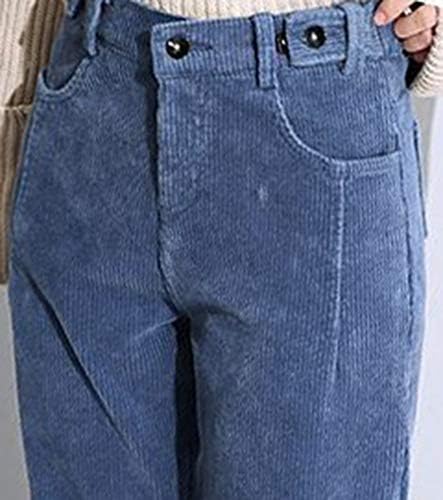 Women’s Cropped Corduroy Pants: High Waist, Retro Style with Pockets