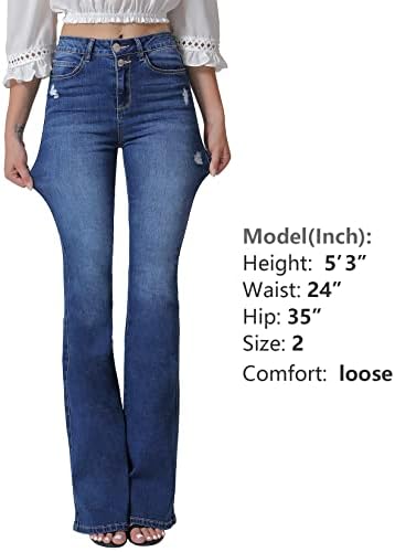 From the brand VIPones, the featured product is flare jeans. These jeans are made of high-quality denim fabric that is soft, breathable, and has a good hanging sense. The jeans have a long bell-bottom design that covers the whole shoe and a high waist that enhances the waistline. They also have a buttock lifting design to accentuate the curve of the buttocks. The jeans feature a unique design with two-button closure, irregular holes in the front, and a gradual aging effect. They are easy to match with various tops and can be worn for daily leisure, school, office, party, shopping, and travel. The package dimensions are 13.94 x 11.77 x 1.61 inches and the weight is 1.06 pounds. The jeans are available for women and were first available on September 9, 2021. The ASIN is B09FGWQRCG. It is recommended to machine wash the jeans. It is also noted that due to the stretch fabric, some customers may find the jeans a little bit loose, so it is advised to select a smaller size if a tighter fit is desired. The colors may vary depending on the display of the electronic device.