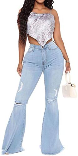 BUY NOW – CutieLove Women’s Ripped Jeans Bell Bottom Flare Jeans Mid Rise Destroyed Hem Denim Pants