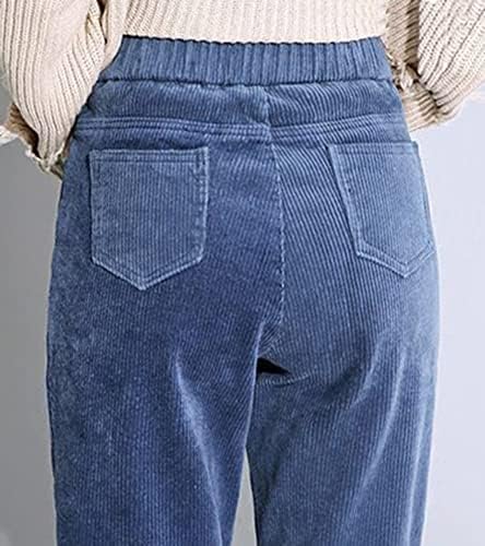 Women’s High Waist Retro Corduroy Cropped Pants with Pockets