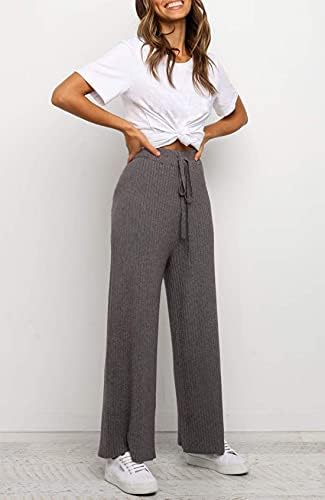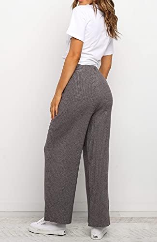 BUY NOW – Waitfairy Womens Solid Rib Knit Wide Leg Pants Elastic Waist Flowy Sweater Pants