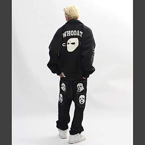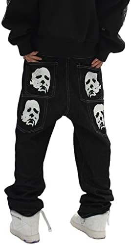 Hip Hop Gothic Denim Pants: Men’s Graphic Print Baggy Punk Rock Jeans
