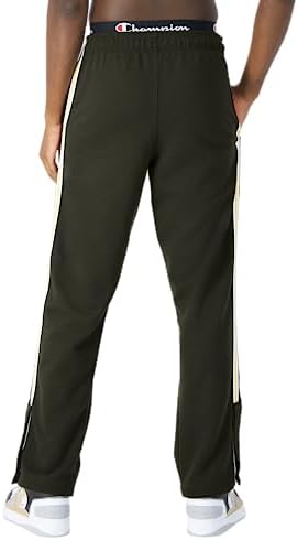 ATHLETIC STYLE IN SNAP. These snap away pants feature sporty striped taping and are easy to put on and take off. They are made with Champion’s signature Powerblend® Fleece, which has a soft, brushed interior for warmth without adding weight. The pants are crafted with high-quality cotton-blend fabric, making them a favorite for a long time. They have extra stitch details for added durability and side pockets for convenience. The elasticized waistband with an adjustable drawcord closure ensures a custom fit. The pants come in different colors and can be paired with Champion sweatshirts, tees, and more. They have a standard fit with a 32″ inseam. The fleece is midweight, 9 oz., warm, and durable, with a brushed finish for softness. The pants have an elasticized drawcord waistband with striped taping on the sides and branded snaps at the leg openings for easy on and off.