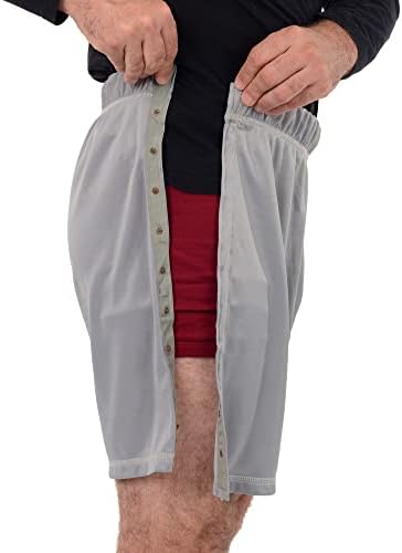 Product Description: These shorts are specially designed with snaps on both sides for easy access to the patient during the post-operative period. The snap design allows for observation with minimal disturbance and provides comfort by allowing easy access to all areas. These shorts are perfect for post-leg surgery recovery, sports injuries, physical therapy recovery, and for handicapped individuals. They are also great for anyone with limited mobility. Made from premium quality cotton blended fleece fabric, these shorts prioritize comfort and are machine washable. The drawstring closure and soft snap buttons make them easy to put on and take off. Available in various sizes, these shorts make the perfect gift for someone in their time of vulnerability.
