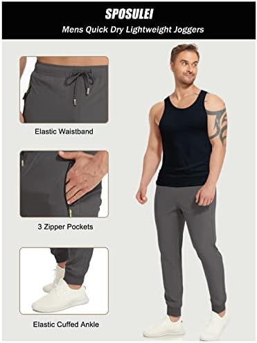“SPOSULEI Men’s Lightweight Joggers: Quick Dry, Tapered Pants with Zipper Pockets”