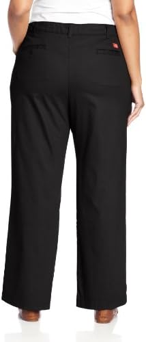 The Dickies women’s plus size relaxed straight leg stretch twill pant is designed for those who prefer a relaxed silhouette. It has a mid-rise fit that sits just below the natural waist. The contour waistband is made with a stretch interlining to provide a closer fit and prevent gapping at the back waist. The pant has a hook and eye closure for a clean look, and two welt pockets on the back. It is imported and can be machine washed. The pant offers a comfortable fit and has a relaxed silhouette through the seat and thigh. The front closure is a hook and eye for a smooth appearance.