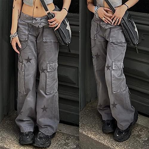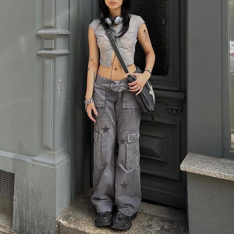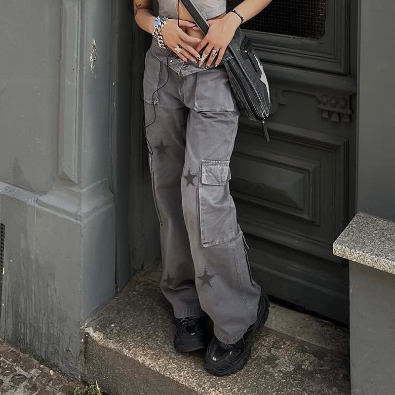 Axupico Star Pattern Cargo Pants: Women’s Harajuku Grunge Jeans with Pockets (Low Waist, Baggy Fit)